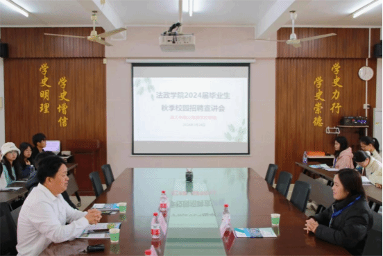 李德深向用人单位介绍了法政学院的历史发展、学科特色、人才培养以及毕业生情况等,希望双方建立长期稳定的实习就业合作平台,进一步加强人才培养、就业实习实践等方面的合作,明确供需意愿,促进互联互通,为我院毕业生创造更多实习和就业机会,实现双方互助共赢。