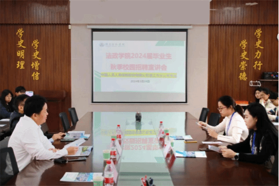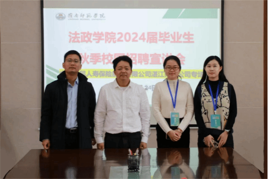 法政学院于3月24日邀请到中国人寿保险股份有限公司湛江分公司到我院进行专场宣讲招聘活动,学院党委李德深书记、党委副书记易贤、毕业班辅导员赵欢以及2024届部分毕业生参加了本次宣讲会。