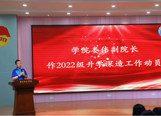 娄伟作2022级升学深造工作动员。首先,他从就业层面出发,通过分析当前竞争激烈的就业形势,结合具体实例,指出升学深造是助力同学们走向理想岗位的重要途径。其次,他表示升学深造能够帮助同学们开阔视野,丰富人生经验和人生境界,带领同学们走向更高的平台,从中获得更多资源和平台。最后,娄伟鼓励2022级有志于升学深造的同学们坚定初心,勇毅前行,祝愿大家如愿上岸。