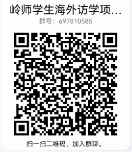 递交报名表的同学,请扫码加入“岭师学生海外访学项目QQ群”,便于后续相关事项的联络与通知。