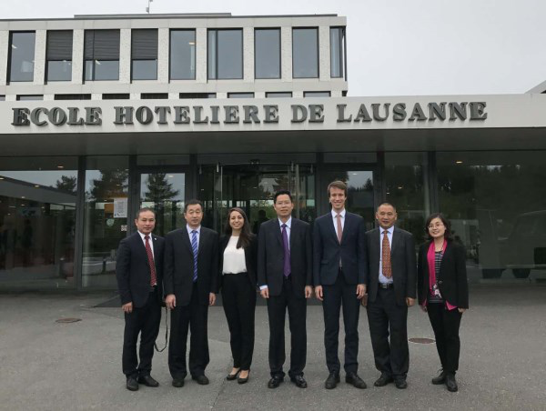 5月11日,代表团一行到瑞士洛桑酒店管理学院(EHL)洽谈合作。该学院是一所精致学校与高级酒店的有机综合体,代表团首先深入该校的教室、报告厅、图书馆、餐厅、咖啡厅、厨房、储物间、备菜间、洗碗间、品酒实验室乃至有机植物园等参观交流。随后,与校方国际合作事务官员就双方交流合作进行了会谈,洽谈内容包括我校学生到该校短期交流和升读硕士项目,青年教师来校短期进修,授权我校代表该校在国内开展酒店职业经理人课程认证、学历认证,以及选聘优秀的硕士毕业生到我校任教等。据悉,创办于1893年的洛桑酒店管理学院,是全球第一家酒店管理学院,与美国康奈尔大学并列世界酒店管理专业排名第一。百余年来,该学院在酒店管理人才培养和旅游教育理念的探索卓有成效,“洛桑模式”成为国际公认的酒店管理人员培养的成功范例。