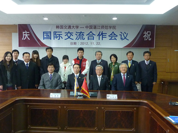 22日我校代表团一行造访了韩国国立交通大学。该校是与我校最早合作的韩国高校之一。校领导互访、教师交流、互派交换生、攻读研究生等工作已成常态。目前,我校有三名交换生分别在该校学习,一名同学在该校攻读公共管理专业的硕士研究生。我校代表团受到了交通大学领导和我校在该校的同学的热烈欢迎。张炳辑校长为梁书记一行举行了隆重的欢迎仪式,对梁书记一行的到访表示热烈欢迎,对在我校访问期间受到的盛情款待表示感谢,同时表达了继续与我校深化合作的愿望。梁书记感谢交通大学为我校老师、学生提供良好的学习和生活环境,详细介绍了学校的发展历史和办学优势,表示要不断深化两校的合作和交流关系。该校参加欢迎仪式的还有研究生部、国际交流处、学生处、企划处和教育学院等部门的领导。梁书记一行在交通大学期间还看望了我校在交通大学学习的交换生和研究生,与他们进行了深入的交谈,全面了解他们的学习和生活情况,勉励他们要勤奋学习,包括学习韩国师生的礼仪、韩国社会的文明精神等。梁书记还勉励同学们要有高度的民族自信,热爱祖国并对中华文化影响力要充分的自信心和自豪感。
