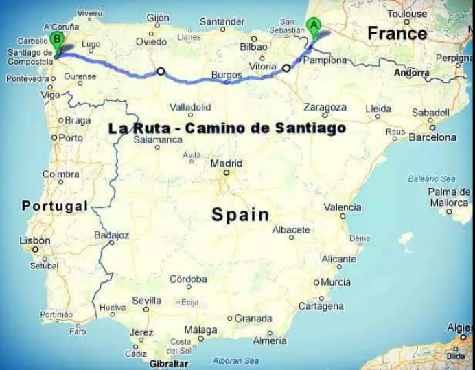 所谓“朝圣之路”,是指一条从法国巴黎直达西班牙西部港口城市圣地亚哥-德孔波斯特拉的古老朝圣线路。为了彰显自己的宗教虔诚态度,从法国出发的朝圣者先在巴黎圣母院集合,一路徒步往西走,沿途拜访修道院和圣迹,沿着一千年前罗马帝国留下的道路一直进入西班牙境内,最终到达圣地亚哥-德孔波斯特拉大教堂。