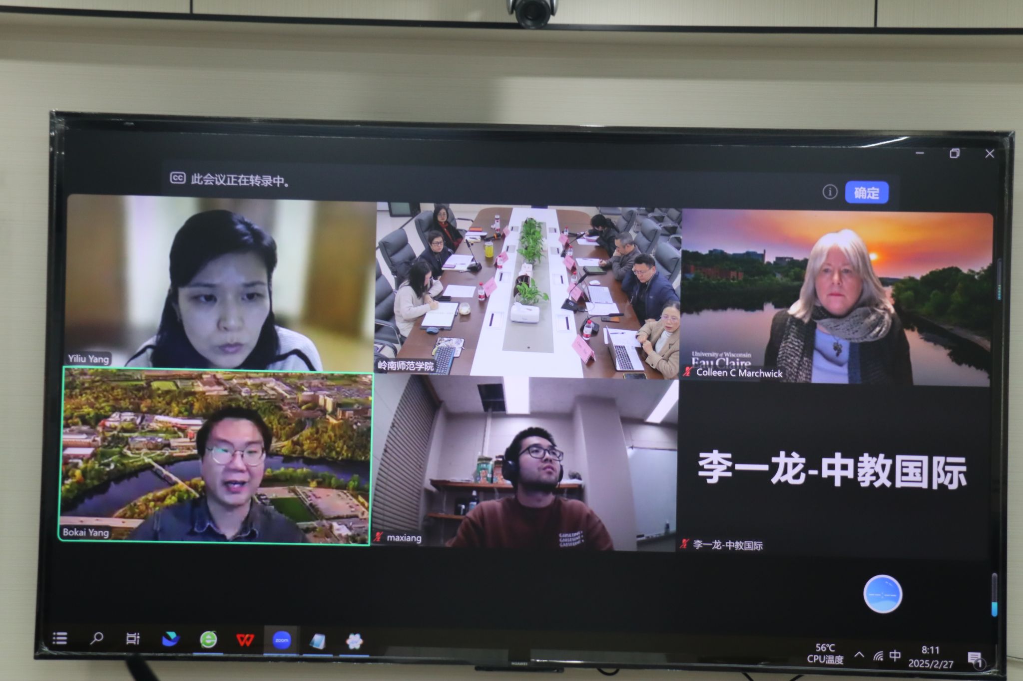 2025年2月27日上午8:00,我校与美国威斯康星大学欧克莱尔分校于第五教学楼A304会议室成功举行线上交流会。受我校国际交流与合作处处长郑志军委托,本次会议由其副处长陈婵娟主持,我校计智学院杨俊杰院长、陈永恒副院长、教师闽笛、陈霞及国际交流与合作处相关人员参加了会议。双方围绕课程对接和合作项目等关键议题展开深入探讨,旨在进一步深化两校教育合作,提升国际化教育水平。