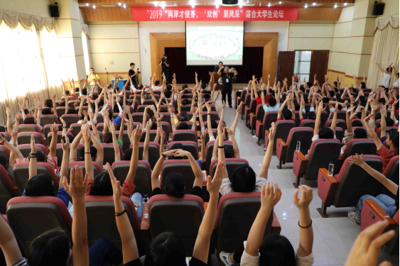 在创新创业论坛上,两岸学子互相分享创新创业的过程和感悟,气氛热烈,笑声、掌声不断。“用主题教学、动态教学等改变“填鸭式教育”的教学方法和打破“寒暑假+课时”的模式的“四学季”课时安排。”台北市立大学学生陈昀彤、江孟璇以一问一答的新颖形式介绍了以台北市和平试验实验国民小学为例的创新教育。台南大学学生陈敏容以台湾基隆一所幼儿园的新式户外游戏设置为例,与大家探讨了“幼戏中处处是学习”的理念。