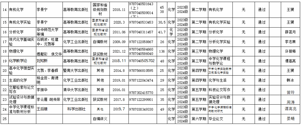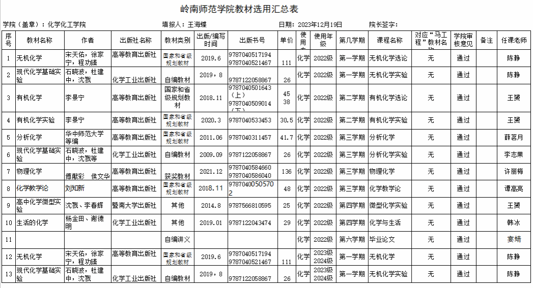 根据《关于组织开展高等学历继续教育教材选用审核工作的通知》文件精神,经教师个人申报、学院审查等环节,现将化学化工学院2022级、2023级、2024级(成教)的教材选用情况予以公示(5天)。