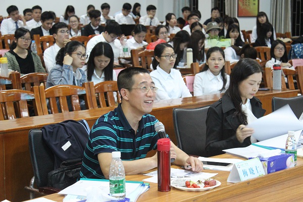 最后,梅晓仁老师上台对本次答辩赛进行点评。他肯定了参赛团队的努力并对选手的创新创意表示赞赏。在分析此次比赛时,他指出创业计划书中存在的问题以及选手答辩时需要注意的“语言表达能力不强”等问题。老师强调选手们在运营过程中要选择合适的营销模式,以便更好地展现产品的竞争优势,同时他认为选手应该要提高自身的语言表达能力,在答辩时要有清晰的思路,在讲解时注意突出重点。此外,梅老师表示自己对各支队伍寄予厚望,希望各创业团队能在充分的探讨后不断地完善自己的参赛作品,取得更好的成绩,为自己和学校争光。