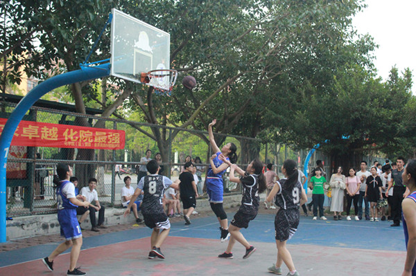 经过层层角逐,女篮决赛在15食品队与16应化队中展开。晚上七点左右,在一片欢呼声中,16应化女队跳球成功并展开进攻。首节比赛中,15食品队率先进入状态,通过不断地冲击内线和争抢前场篮板两次成功进球,枪占先机,很快以9:2取得领先,结束第一节。次节回来,场上局势风云突变,16应化女队11号球员利用速度优势通过快攻反击不断得分,即将把比分追平,仅仅以9:11落后两分结束上半场。下半场回来,比赛呈现焦灼状态。突然,16应化队队员内线突破打进并获得加罚,此时,有可能出现比分反超的情况。然而,令人可惜的是加罚不中,双方继续呈现平局的局面。而就在这时,场上出现了大家不愿接受的一幕,16应化队绝对主力11号球员意外受伤离场。尽管本节末端她顽强回归,伤病和体力的困扰还是明显地影响了其球场上的发挥。而15食品队则抓住这个机会,利用22号的速度、33号的内线高度和底线发球战术频频得手,打出一波9:0的高潮,以20:11结束第三节。最后一节,15食品队稳稳地控制着局面优势,稳扎稳打,最终15食品队以24:14的比分成功摘得桂冠。