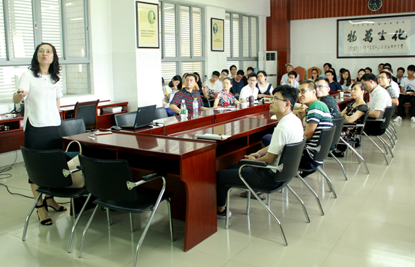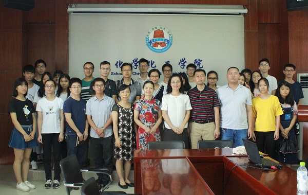 何佺教授就水合热解生物废物制备生物油、应用和企业服务及手性化合物分离三方面进行了精彩有趣的讲学。生物废物可以通过回收利用的方式转变成有用的组分。何佺教授采用水合热解法将咖啡渣转化为小分子(模拟生物在一定的温度、压力和绝氧等条件下转变成油的过程),得到四组分:纯生物油、废渣、过滤后的水溶液和无污染的废气。何教授表示咖啡渣内含有油物质和蛋白质,是一种制备生物油的很好原料。对比实验表明原料的组成与油的品质息息相关。此外,对咖啡渣进行双组份或者多组混合,研究结果显示有些混合方案可以产生协同作用,大大提高了生物质的综合利用率。何教授的研究给当地企业带来福音,她帮助地方小企业优化分离提纯工艺,提高生物柴油的油质。此外,她采用生物油代替到柴油为上市木柴公司解决泡木柴产生的异味问题。随后何教授运用“握手方式”给大家生动地讲解手性化合物分离。