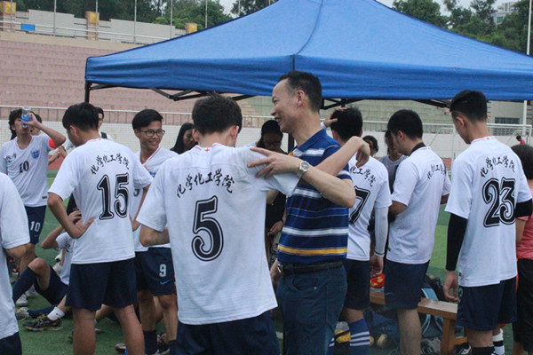 6月10日下午,新区1号田径场迎来一场史诗般的巅峰对决,由挺进决赛的化学化工学院男足对教工“雷阳队”的表演赛。化学化工学院党委李梓副书记、辅导员阮文科老师和学生会全体学生干部亲临现场,为双方队员加油鼓劲。在长达90多分钟的激烈“厮杀”过后,化学化工学院男足最终以0:2的总比分憾负教工队,但因教工队不参与学生组非专业组的排名,故化学化工学院男足已提前锁定第十六届“烛光杯”冠军。