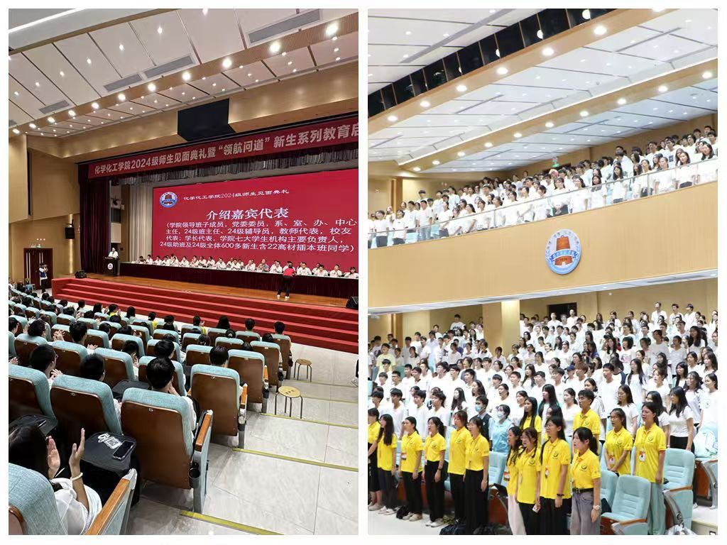 金秋送爽,瓜果飘香。近日,化学化工学院在学校音乐厅隆重举行2024级师生见面典礼暨“领航问道”系列教育启动仪式,学院领导班子成员,党委委员,系、室、办、中心主任,24级班主任、辅导员,教师代表、校友代表;学长代表、七大学生机构主要负责人、24级助班及来自全国各地的600多名新生参加本次典礼活动。典礼由学院党委副书记、纪委书记李凤炼主持。