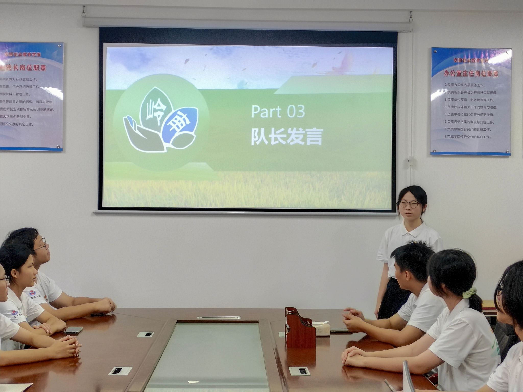 会上,首先由“岭南生态液”突击队队长刘意彤详尽阐述队伍概况。她特别强调团队成员要不负重托、牢记叮嘱,将大学生的智慧、热情与汗水奉献给茂名覃社村如火如荼的乡村振兴事业,为覃社村的发展注入更多的创造力和可持续发展动力。