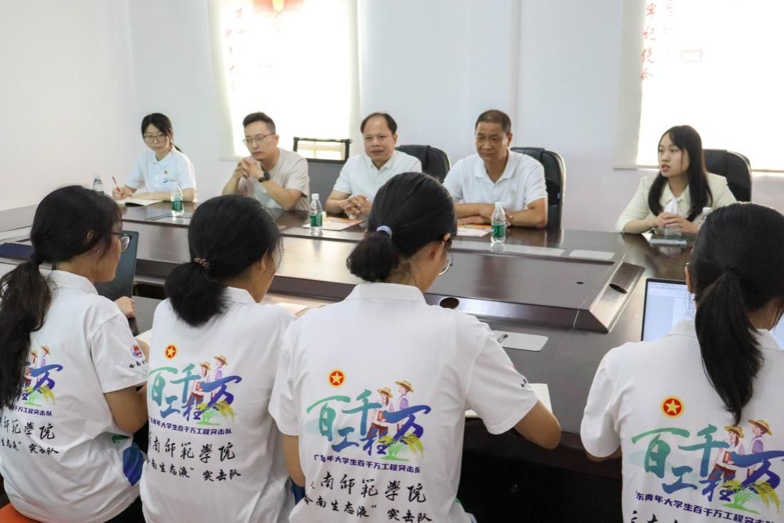 上午10时,“岭南生态液”突击队以饱满的精神状态迎接学院领导一行。随后,李凤炼书记殷切嘱托队员:“坚持传承,紧密协同村委会,以务实行动擦亮岭师学子名片于电白热土。” 李贵兴书记对校方支持表示诚挚谢意,他肯定了突击队助农实践,推动了覃社南药产业进程,打造南药种植示范区并推广“覃社模式”,切实引领村民增收。“既见基地新苗吐绿,更闻未来车间机械轰鸣。” 此番构想,承载着覃社共同富裕的真切期望。