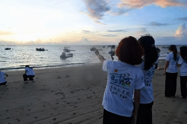 在日出最美的时刻,队员们组织拍摄宣传视频。他们迎着初升的太阳,在金色的沙滩上奔跑,身后留下一串串欢快的脚印。这个充满青春活力的镜头被记录下来,成为宣传视频中最动人的画面。“我们想用这样的方式,呈现下港村滨海美景的独特魅力,展示岭师青年学子助力乡村振兴的热情与朝气。”队员骆兴乾解释道。