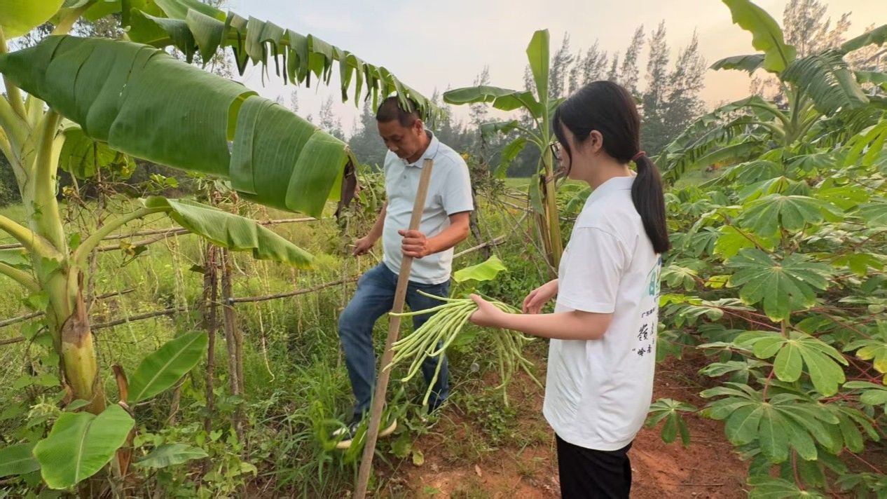 正午的骄阳炙烤着调研驻地,李贵兴书记亲自为队员们切好西瓜。“快歇会,吃块西瓜解解暑气。”他顾不上擦汗,将第一块递给正在记录数据的队员。更让人动容的是书记给队员们剥大树菠萝的场景——戴着手套仔细剔除果眼,把金黄的果肉盛进瓷盘,“这果子涩口,得把内膜去干净。”此外,他总带来刚摘下的龙眼和豆角,“尝尝家乡味,工作起来更有劲头。”