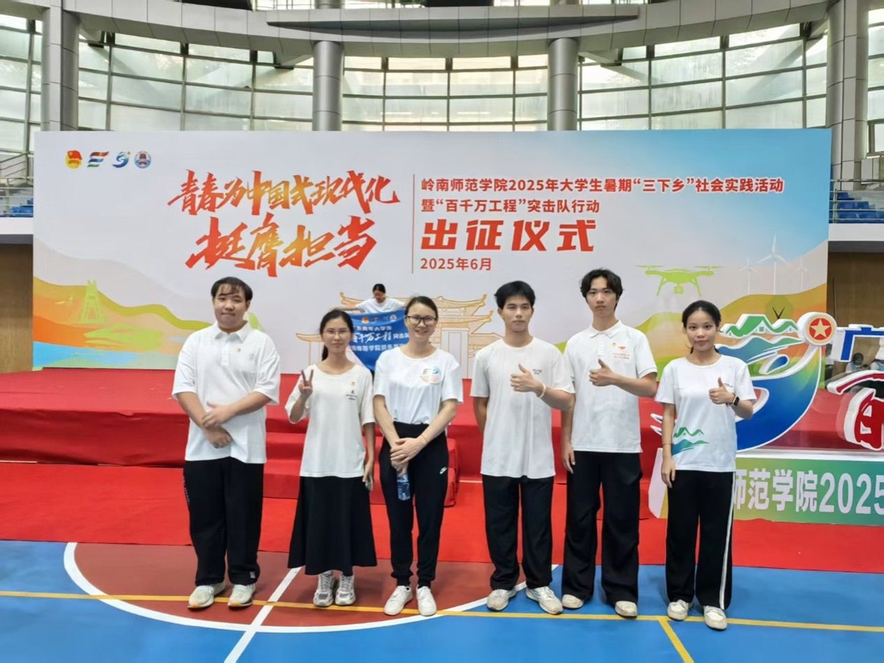 为深入学习贯彻党的二十大精神,全面落实新时代新征程使命任务,引领青年挺膺担当,矢志创新,以奋斗之姿,建功强国伟业。2025年7月5日上午,岭南师范学院绿野催化者突击队参加“百千万工程”突击行动的出征仪式。