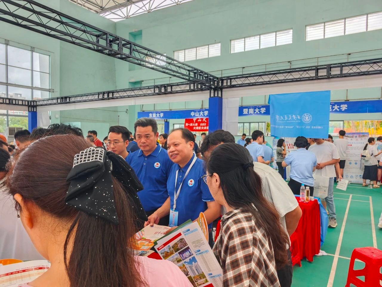 由学院领导老师赵海波、李凤炼、高天明、何永和等组成的招宣队在江门多地多中学开展2025年本科招生宣传活动,现场耐心为考生及其家长答疑解惑;并向考生重点推荐创新班等特色招生项目,帮助考生更好报考。