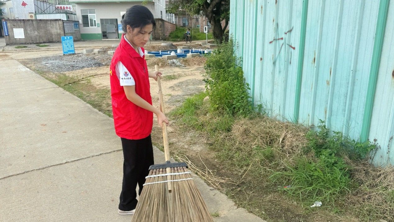 在村委会周边及主干道区域,突击队员们迅速分工。手持扫帚的队员弓着腰,从墙角到路沿,对散落的枯枝、纸屑进行“拉网式”清理;另有队员拎着水桶、握着抹布,认真擦拭会议室地板,连缝隙里的污渍都不放过。面对堆积的杂物,队员们合力搬运、分类归置,汗水浸湿衣衫却无人停歇。经过这番细致打理,村委会周边的环境已然旧貌换新颜。