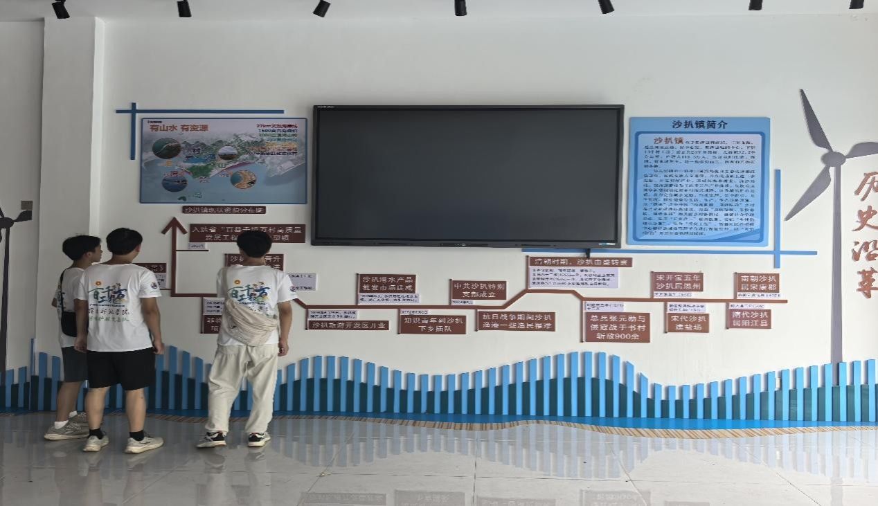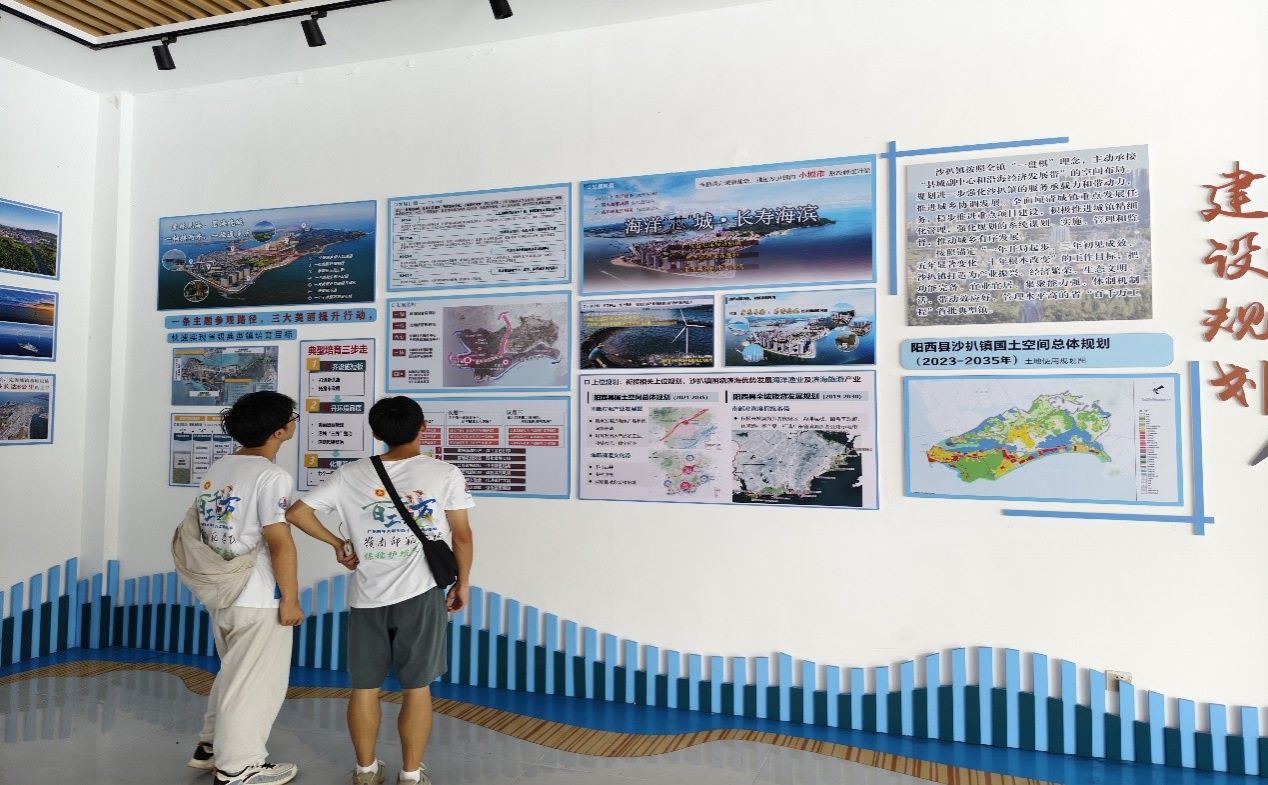 抵达后,实践队参观了沙扒圩镇客厅的沙盘展示区、历史文化展廊和数字规划平台。突击队员们直观感受到沙扒镇“山-海-城”相融的空间格局和“一核两翼三片区”的发展规划。
