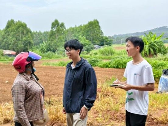 图2 负责人杨即兴与队长洪班超交流树脂在农业生产中的应用