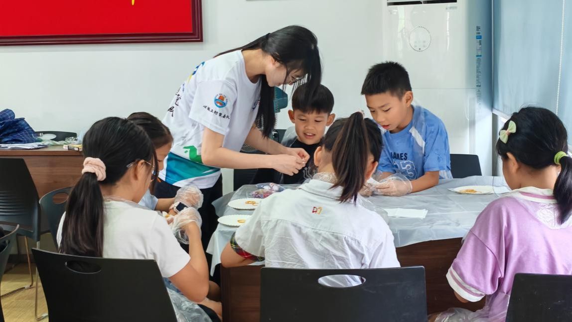2025年7月28日上午,“心链工坊”突击队在珠海市斗门区网山村给留守儿童们开设情感与手工课。