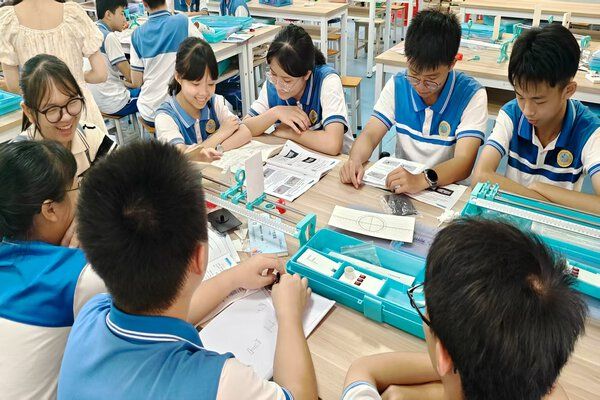 梁莉滢老师带着学生们讲解光学的入门课——小孔成像实验,梁莉滢老师先将小孔成像的原理用具体地方式进行实验展示出来,让学生们在动手中理解小孔成像的原理,在实验的过程中,同学们脸上洋溢着学习新知识的笑容。