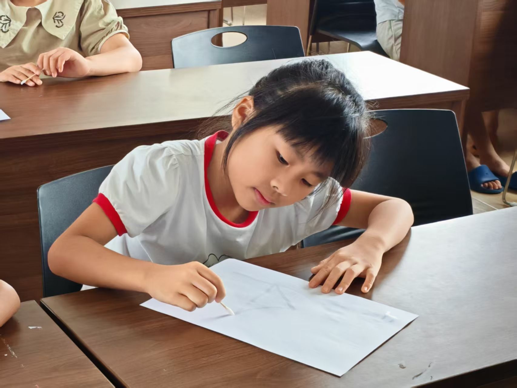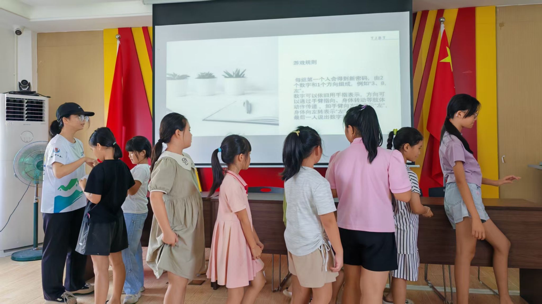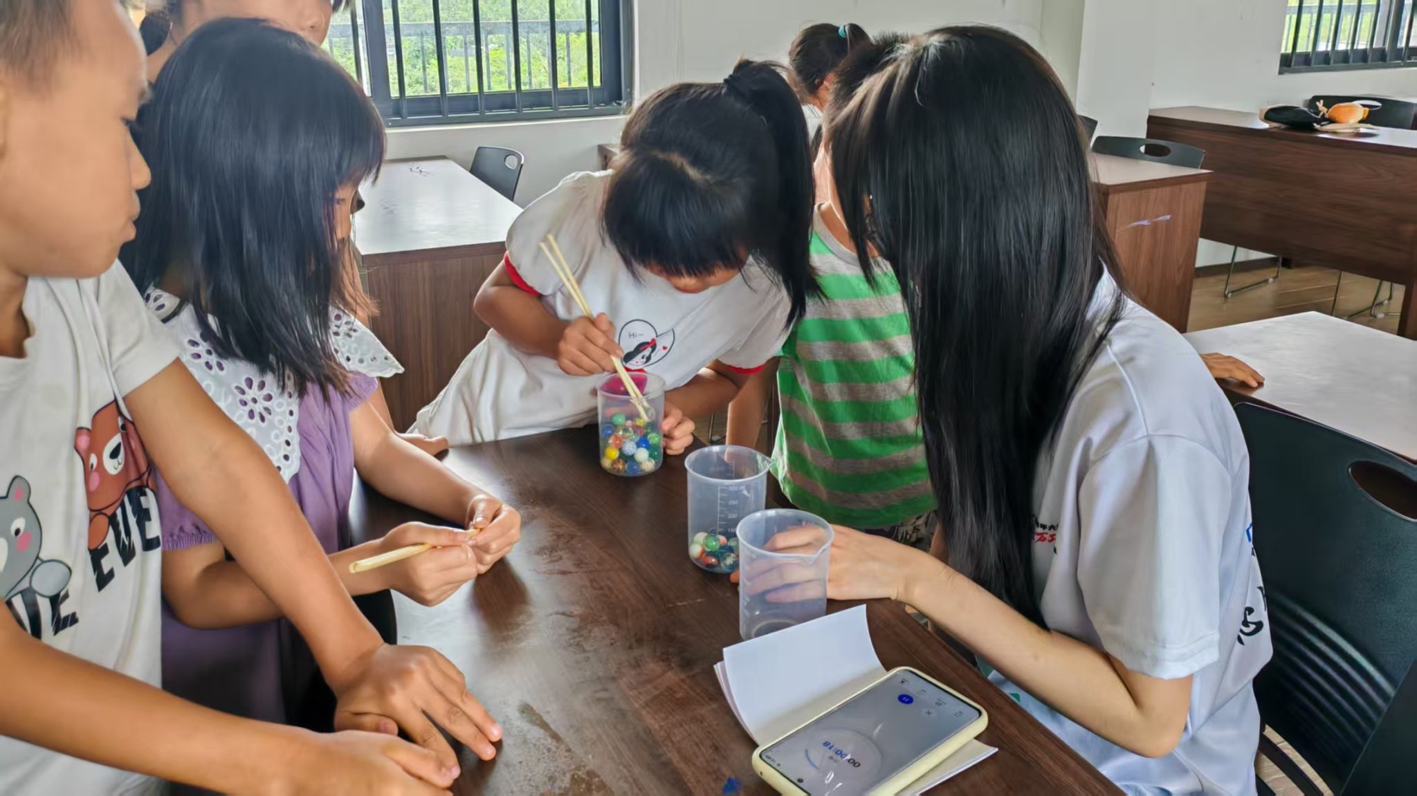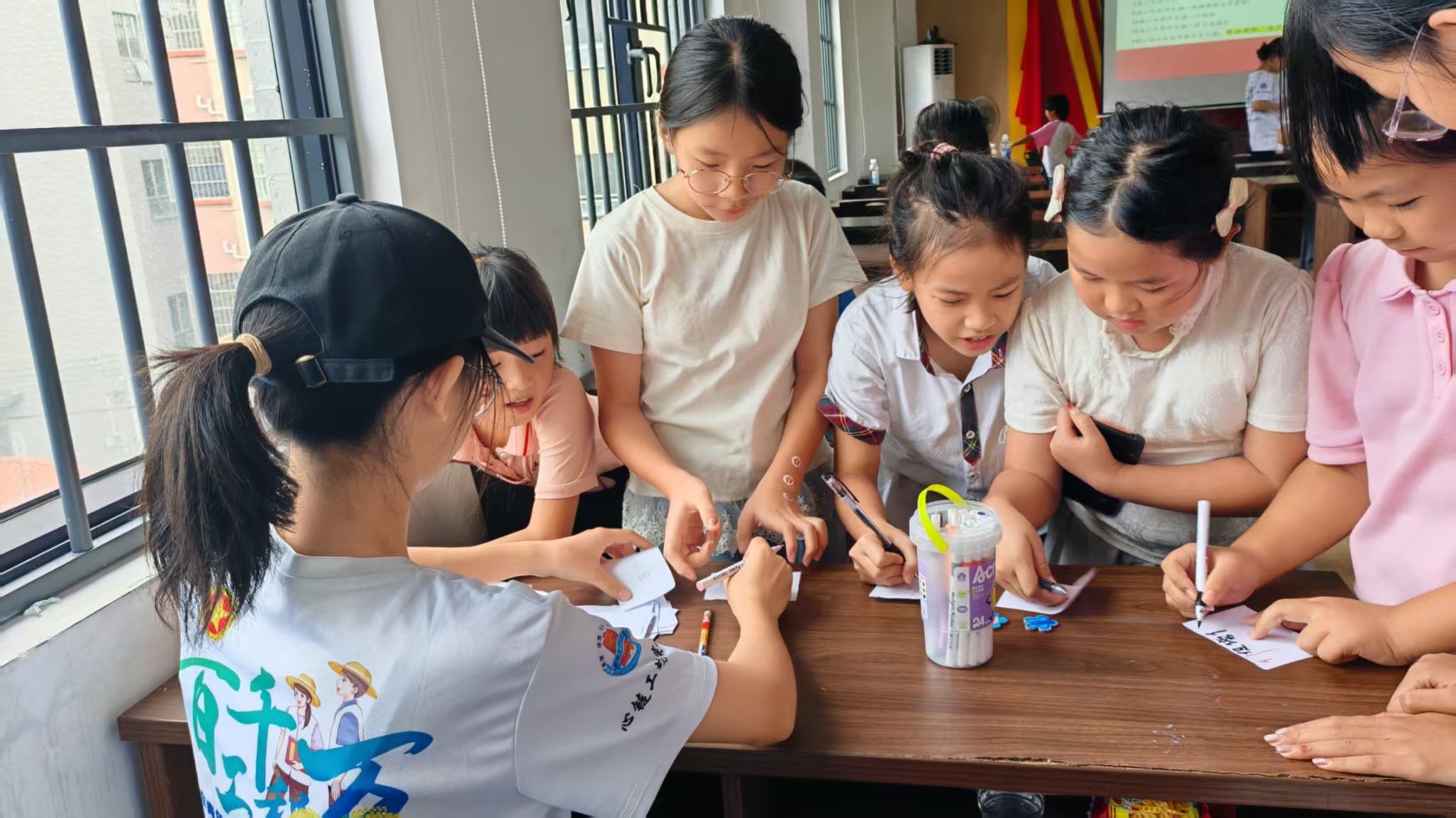 2025年8月1日,“心链工坊”实践团队在珠海市斗门区开展科普实践活动,20名乡村儿童通过“密码传递战”游戏与“淀粉墨水”实验,在团队协作中提升逻辑思维与科学认知。