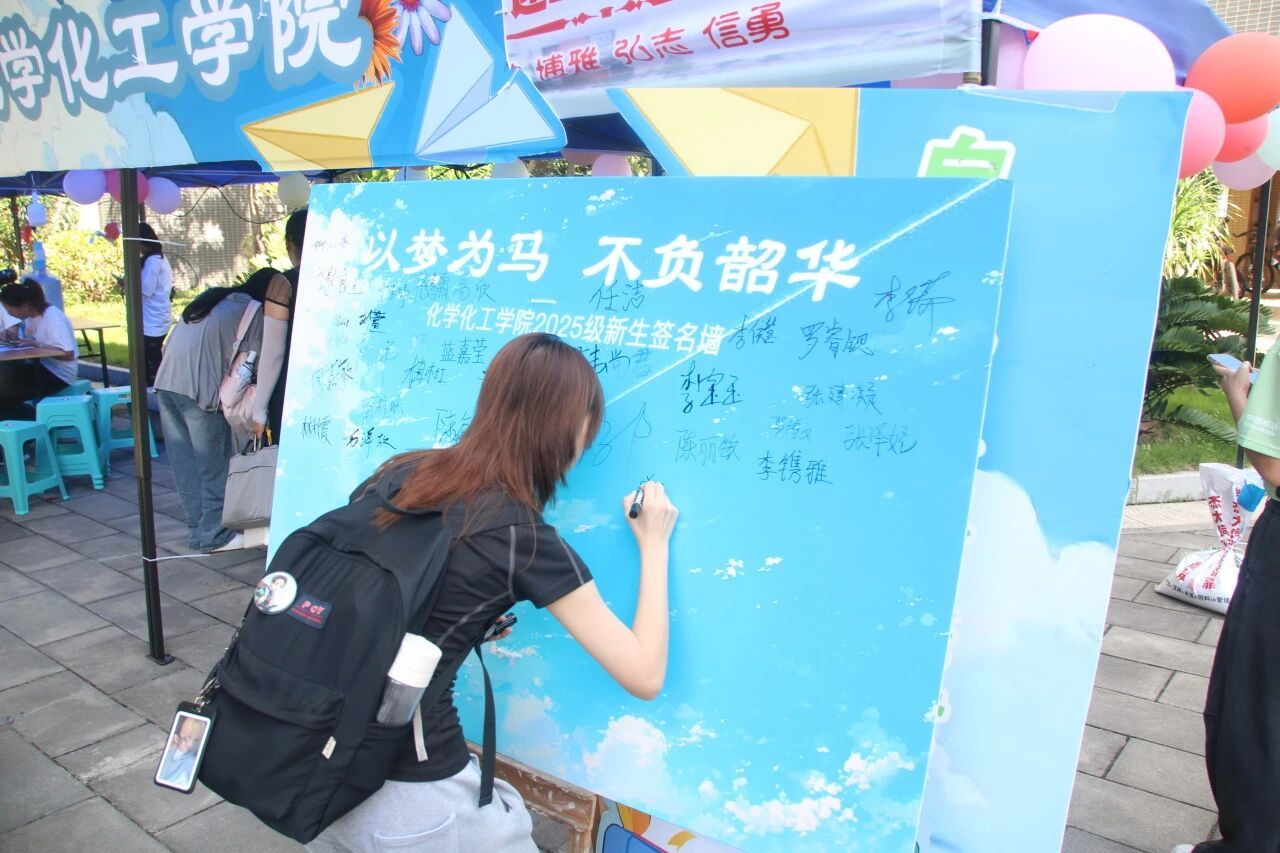 今年,学院重点推出以“领航问道”为主题的精心细心暖心之2025年“七个一”迎新赢心系列特色活动,具体包括:“设一面”书写美好愿景的新生“锌”愿墙,2025级全体新生畅写大学四年愿望寄语;“制一个”意为“元素情怀燃壮志,化学人生启新程”的入学拍照打卡点;“派一份”包括“化学、应用化学、制药工程、高分子材料与工程、化学工程与工艺”等专业学习的温馨提示卡;“邮一封”旨在“携手共育”的家校联系信,搭建学院与家长的全天候沟通纽带桥梁,实现家院“沟通无障碍”的即时互动;“寻一回”探索“燕岭雷阳”人文景观的初识大学“神秘旅约”,人手一份“研越”礼物访校园;“开一次”各班“大学四年首班会”,学院党政领导参加见面讲授“基孔肯雅热”防控知识,系主任班主任辅导员作“专业情志”暨“润心化院”教育,加强班内融洽联谊;“组一场”全体师生参加的“领航问道”见面典礼大会,开展庄严隆重入学宣誓仪式……通过“七个一”学院旨在第一时间向新生传递新时期校院教育、管理、服务及文化理念,助促2025级研究生、本科新生“以梦为马,不负韶华”尽早树立“自强至化、敏行于工”的学研拼搏奋进精神。真正实现“迎新‘赢’心”、“迎‘锌’有特色”的化院2025年迎新工作成效。