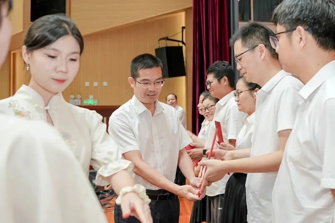随着观看学院宣传片、学院考研典型视频和激昂的国歌奏响,典礼正式开始。会议伊始,学院党委书记赵海波为新生班主任颁发聘书。学院院长周小松教授作典礼致辞,他发言回顾了学院的发展历史,详细介绍了学院的专业、师资、科研平台及师生成果,并叮嘱同学们要明辨大势,认识化学在能源、医药等领域的时代价值;深耕学业,夯实基础、重视实验与创新、善用信息技术;涵养品格,守学术诚信、培团队精神;融入学院,共建学术共同体。希望同学们能够珍惜韶华,做好规划,既要志存高远,又要脚踏实地,书写属于自己的大学精彩华章。