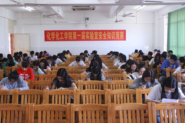 实验室安全知识竞赛采用笔试的方式进行。据悉,比赛涵盖化学实验室安全基本知识、电和气的使用、重要常规化学品的安全使用、常规化学实验仪器的使用、基本的实验操作规范、化学实验基本知识等方面相关知识。相信通过这一系列活动,师生能以此为契机,进一步把安全工作做好、做实,把各种安全隐患消除在萌芽状态,有效提高安全防范意识,为继续推进“礼貌、平安、和谐”校园建立不懈努力。