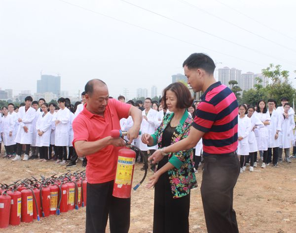 张飞燕书记接着表示,消防安全事关“平安和谐校园”的创建,希望全体师生给予重视。保卫处杨继焱科长讲授消防相关知识。他从灭火器的结构、操作方法及如何正确地报警三方面详细讲解,并进行操作示范。