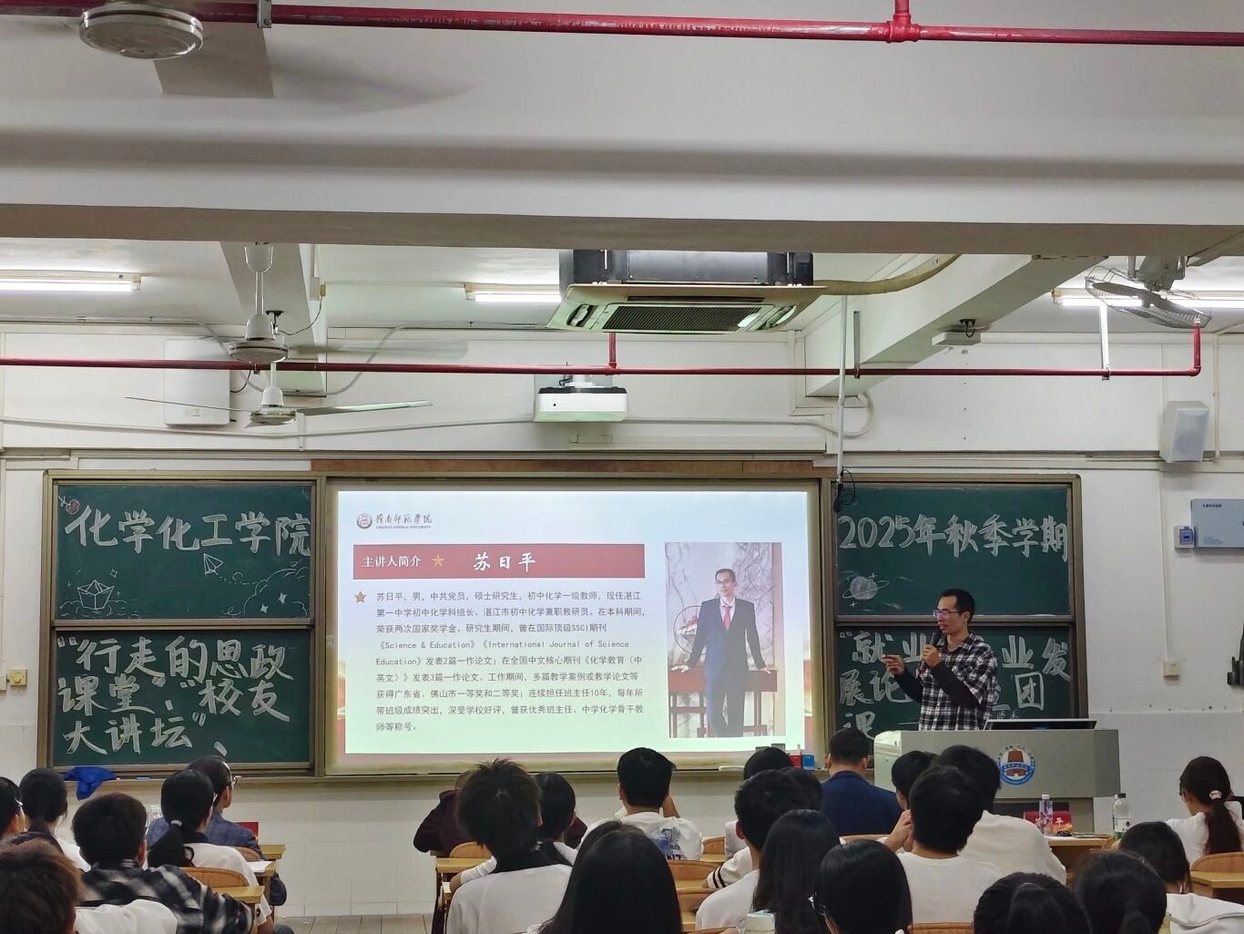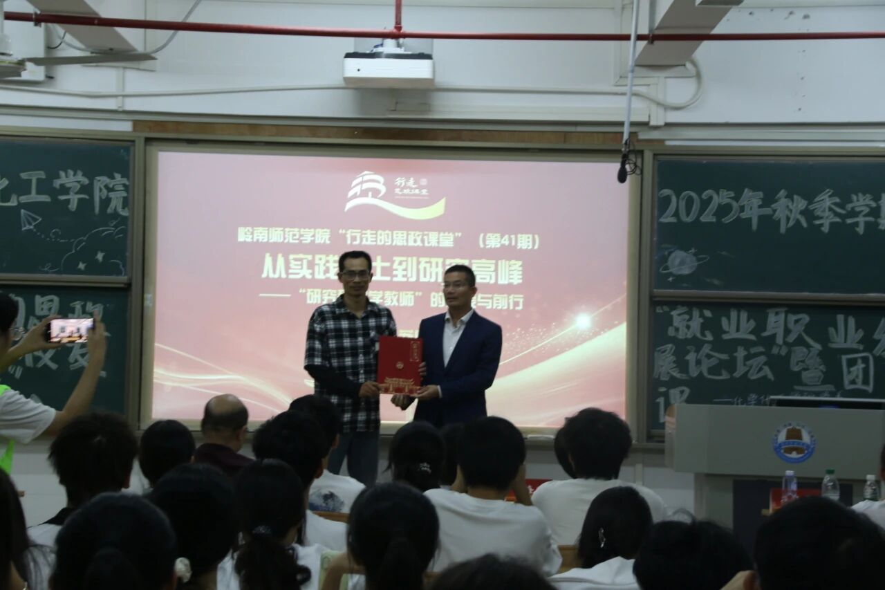 近日,由化学化工学院承办的学校第41期“行走的思政课堂”报告会在第四教学楼C702教室成功举办。本期活动特邀湛江一中初中化学科组长、湛江市初中化学兼职教研员苏日平校友返校作专题报告。学院党委书记赵海波、学院团委书记陈海娇及学院团校学员、师范生代表共同参与了本次活动。