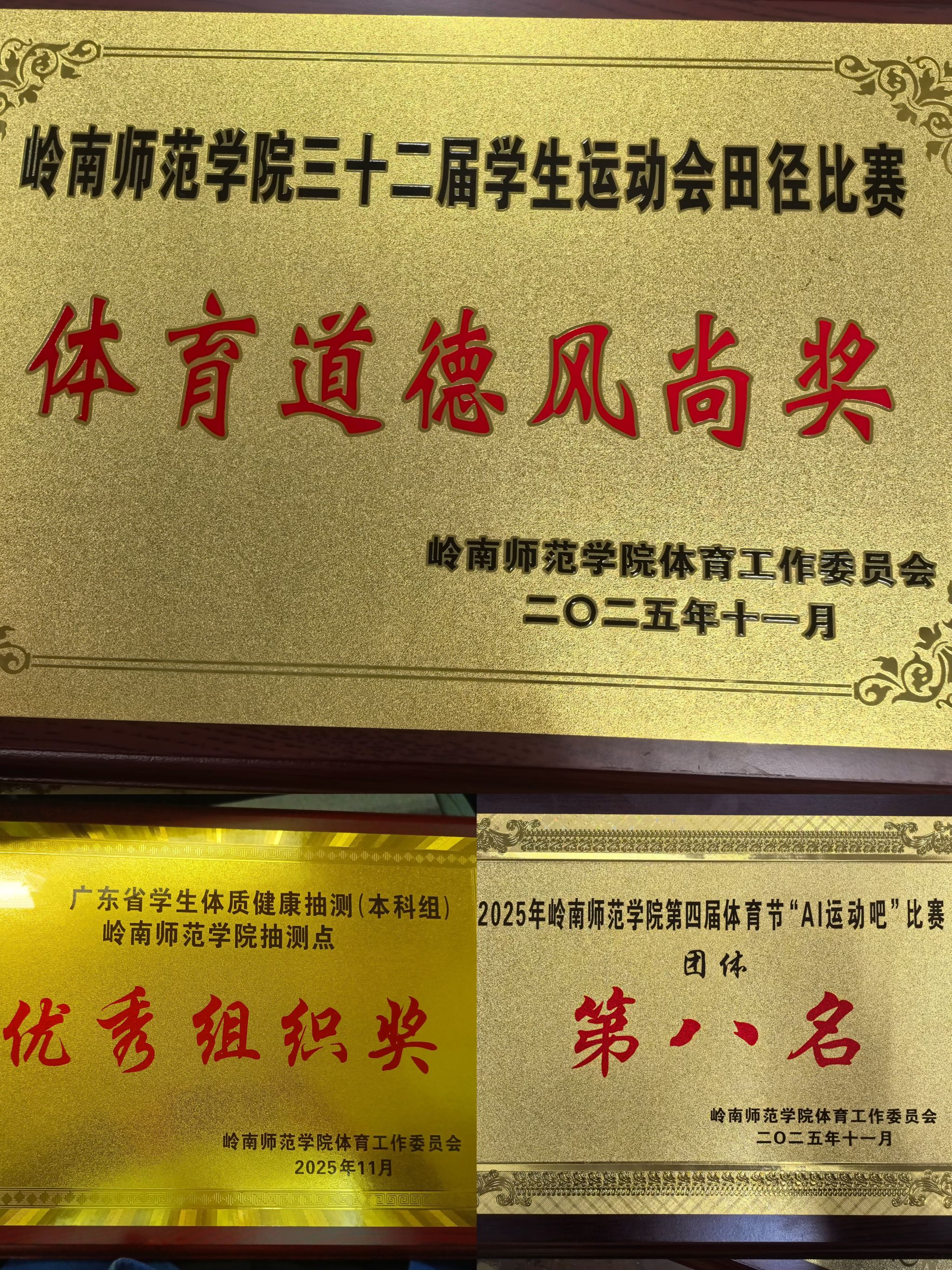 近日,我院在2025年校运会暨体育节上获体育道德风尚奖、AI运动团体总分第八名及体测优秀组织等三项集体奖。在这过程,我院运动员团结协作,相互配合,赛测出风格、赛测出水平,以及学院师生在校运会开幕式、闭幕式、教职工趣味运动等比赛表现大受观众赞赏。