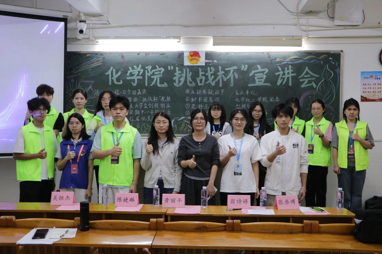 12月20日晚上,化学化工学院在燕雷楼C栋705室举行2026年"挑战杯"宣讲会,出席会议的有学院“挑战杯”优秀指导老师代表黄丽平教授,校大学生创新创业实践中心干部翁诗婷,学院团委秘书团张乔博,学院往届优秀团队代表陈婕琳及意向参赛的2026团队代表。