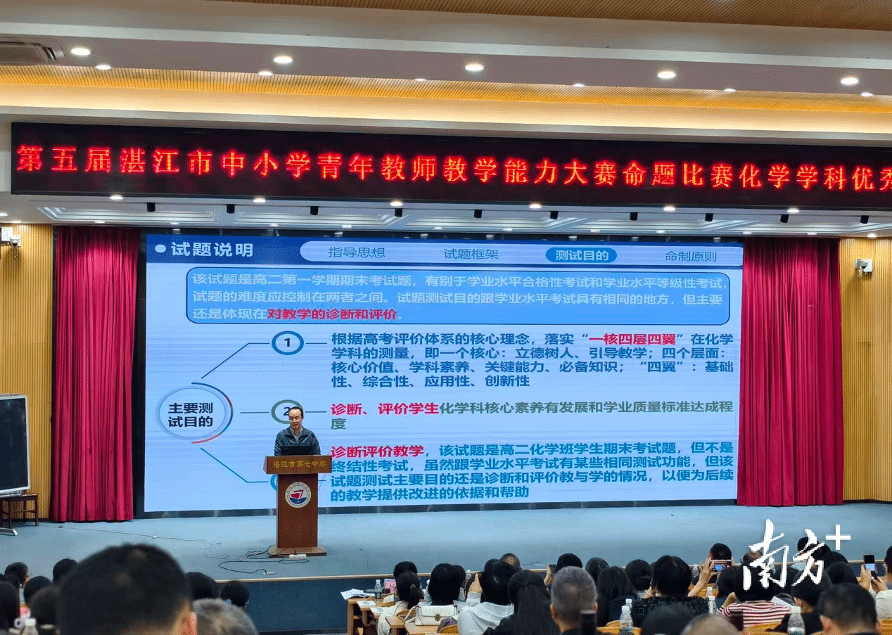为提升湛江市化学教师的命题能力与教研水平,12月19日,第五届湛江市中小学青年教师教学能力大赛化学学科命题比赛优秀作品展示活动在湛江市第七中学顺利举行。本次活动由湛江市教育局主办,湛江市教育局教学研究室与岭南师范学院化学化工学院联合承办,并特邀我国著名化学教育专家、华东师范大学王祖浩教授作专题指导。