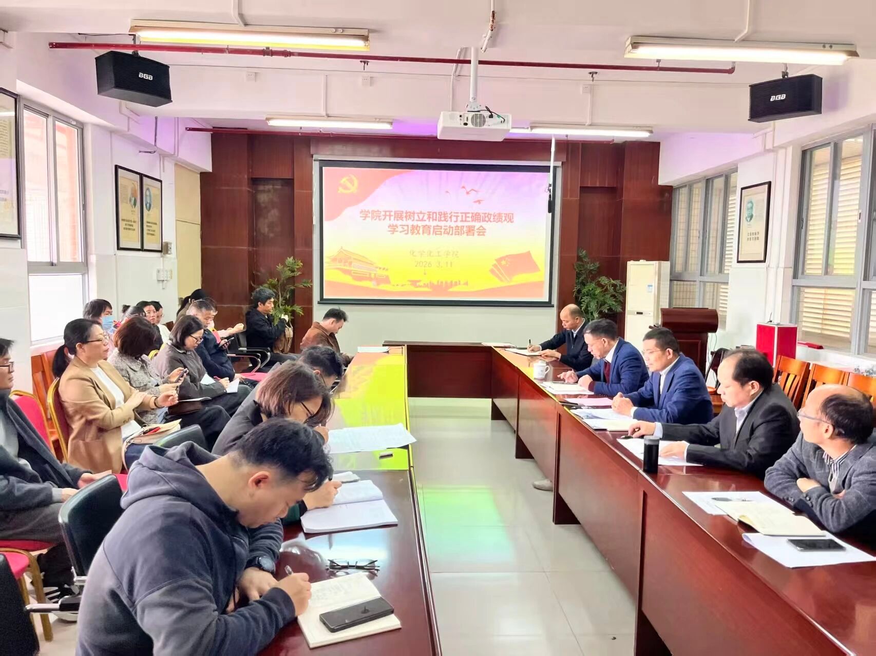 3月11日,化学化工学院召开树立和践行正确政绩观学习教育启动部署会,深入学习贯彻习近平总书记关于树立和践行正确政绩观的重要论述,传达学习上级关于在全党开展树立和践行正确政绩观学习教育通知,研究部署学院贯彻落实工作。学院党委副书记李凤炼传达学校会议精神,学院党委书记赵海波作动员部署讲话。学院全体党员、教职工参加。