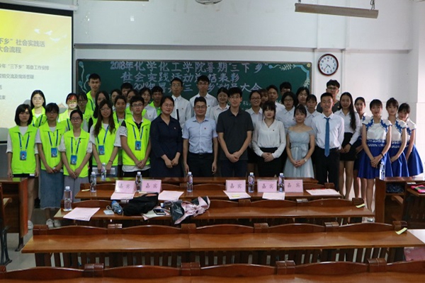 大会给化学化工学院2018年大学生暑期“三下乡”社会实践活动先进集体和先进个人颁发了荣誉证书。学院团委实践部学生干部对今年“三下乡”筹备工作进行了讲解,“高飞”实践队队长李卓结合视频播放讲述了“三下乡”的故事,“清漪”实践队队长梁嘉怡则通过PPT分享了“三下乡”各项任务落实的经验,并解答了同学们关于安全、调研等方面工作的疑问。