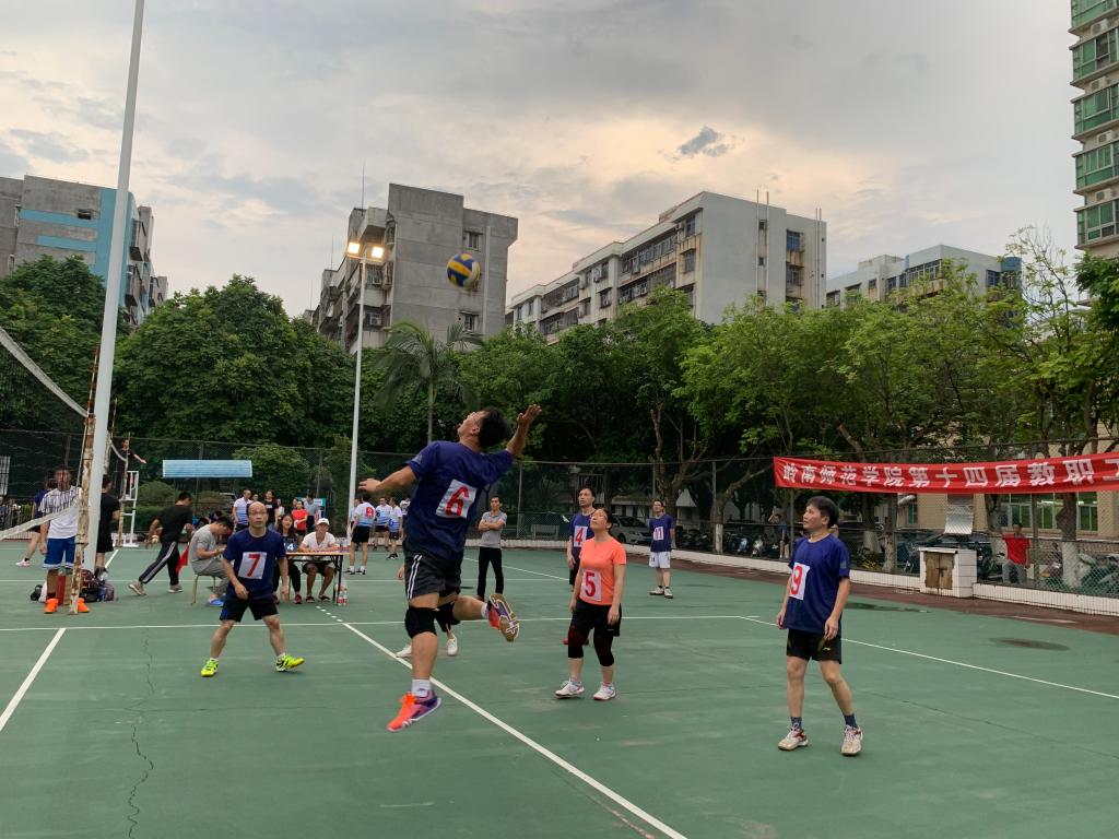 赛前,紧锣密鼓备战。一接到比赛通知,领队陈静老师就着手组建参赛队伍。随着训练的有序开展,老师们的参与热情日益高涨,学院代表队发展壮大。队员们克服种种困难,利用班后时间抓紧训练、积极备赛。从夕阳西下到华灯初上,发球、防守、进攻、配合……在十几天的密集训练中,队员们挥汗如雨、不怕苦累,很快形成了团结、默契的团队氛围。