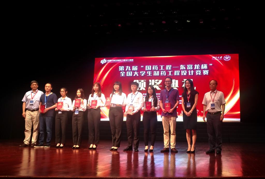 2019年8月23-26日,由教育部高等学校药学类专业教学指导委员会主办,中国医药集团联合工程有限公司和上海东富龙科技有限公司协办的第九届“国药工程-东富龙杯”全国大学生制药工程设计竞赛总决赛在浙江大学举行。经过激烈角逐,我校两支参赛队伍分别荣获全国一等奖和三等奖,是全省参赛队伍成绩最好的,创造了我校参加该项比赛的最好成绩。
