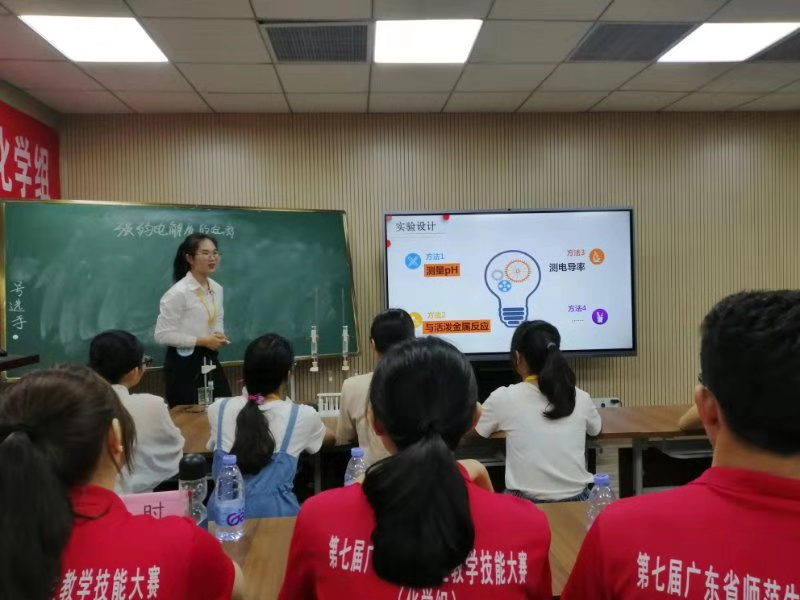 广东省本科高校师范生教学技能大赛是省内规模最大、影响最广的高水平师范生教学技能竞赛。本届大赛由广东省教育厅主办,韩山师范承办,华南师范大学等省内有师范专业的9所院校选派近60名选手参赛。化学化工学院一直高度重视对师范生教学技能的培养,为师范生开设了《化学教学论》《化学教学技能训练》《中学化学实验教学研究》等必修课程,以及《中学化学试题分析》和《中学化学教材分析》等选修课程,为师范生的理论素养、思想方法和教学技能打下扎实的基础。参赛选手们纷纷表示,本次比赛是一个良好的学习交流平台,是一个提升师范生教学技能的机会,在比赛中收获了友谊、收获了进步和收获了成长。