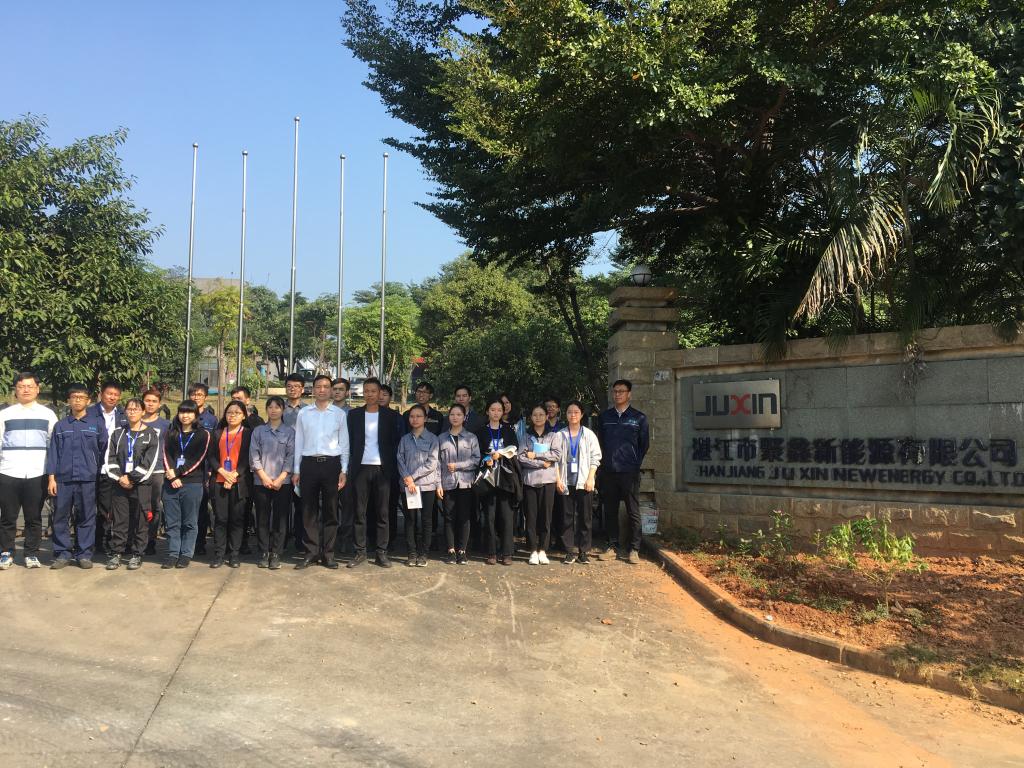 11月11日上午,化学化工学院周小松副院长、张国强博士和阮文科老师来到湛江聚鑫新能源股份有限公司考察了2016级应用化学专业实习学生,并与公司高层管理、实习生们一起进行了座谈会。聚鑫新能源股份有限公司对考察活动高度重视,公司董事长吴其修、经理刘明东,营销总监吴有铭和技术总监肖玮及公司行政等人员出席座谈会。