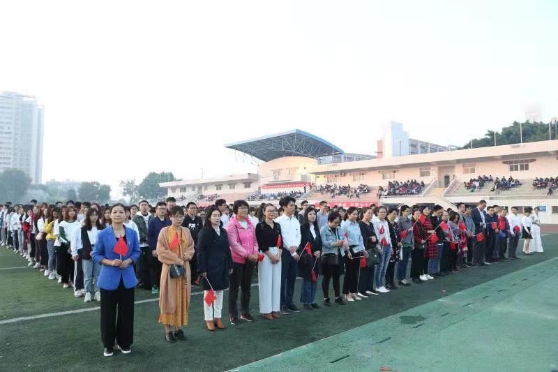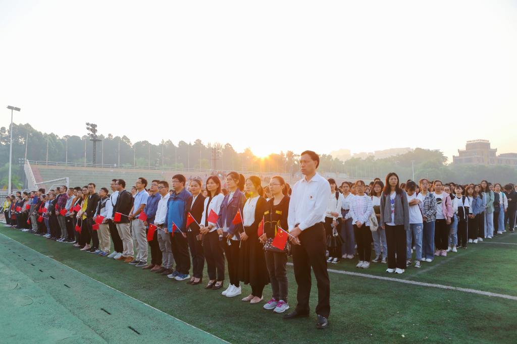11月11日清晨,化学化工学院全院师生一同在学校田径运动场参加升国旗仪式,在“不忘初心、牢记使命”主题教育中强化爱国主义教育。五星红旗在金色的朝霞里,在学院1800多师生如炬的目光中,伴随着雄壮的国歌声冉冉升起。