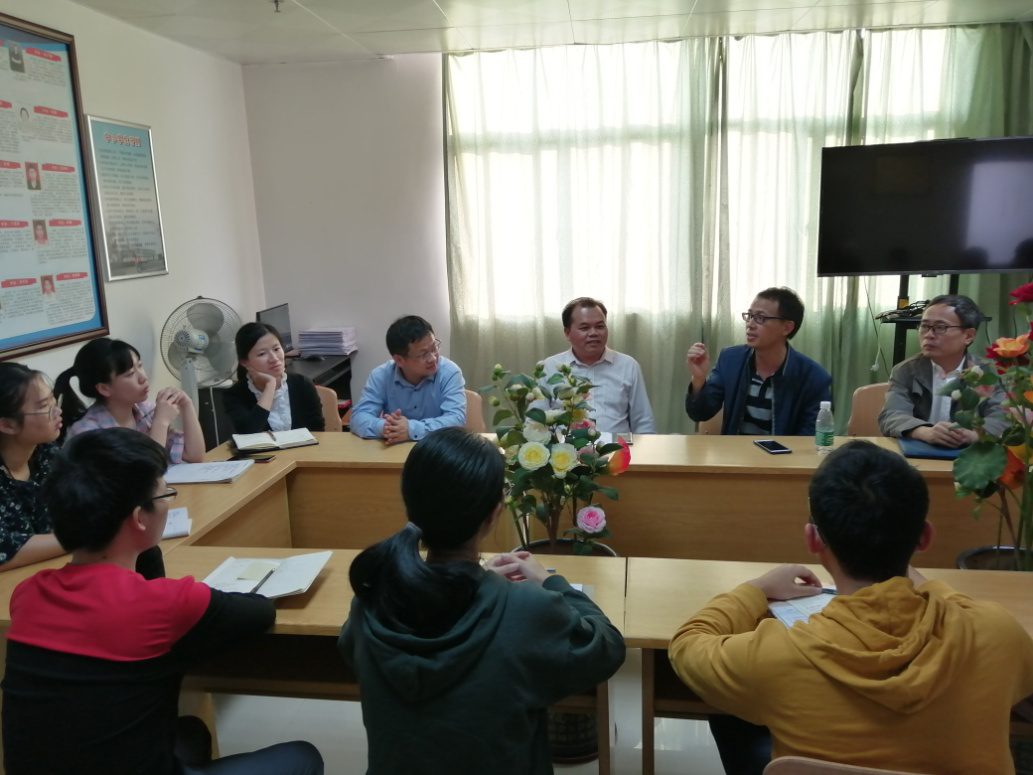 为深入了解学生的实习情况,进一步加强对学生实习工作的指导以及更好地安排后续的教学工作,10月21日,我院刘生桂副院长、夏加亮主任、刘一兵副教授等实习指导小组成员以及湛江一中实习队指导教师彭兰贞老师前往湛江第一中学看望14位实习生。