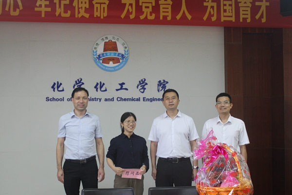 为庆祝第35个教师节,营造尊师重教、立德树人良好氛围,9月9日,学校副校长王胜在校办副主任冯凌凌的陪同下来到化学化工学院,走访慰问教师代表、我校引进的超分子自组装研究专家周小勤博士。化学化工学院党委书记赵海波、院长周小松参加了慰问座谈会。