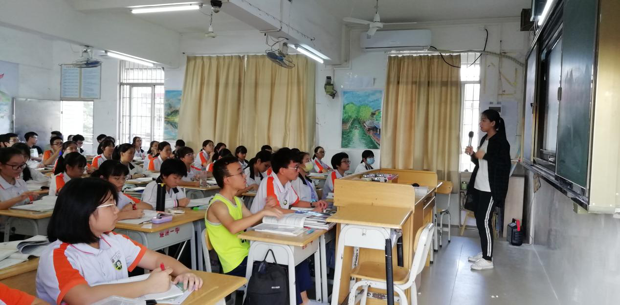 实习指导小组一行首先到遂溪一中,观摩实习生黄璐华在高一班级上的一节新课《物质的量》。该课充分利用学生已有知识经验,运用类比同化教学策略生动形象揭示“物质的量”概念的内涵外延。课上黄璐华自信大方,通过讲练结合引导学生熟悉和运用公式N=nNA,学生积极配合,课堂教学氛围融洽,教学效果良好。