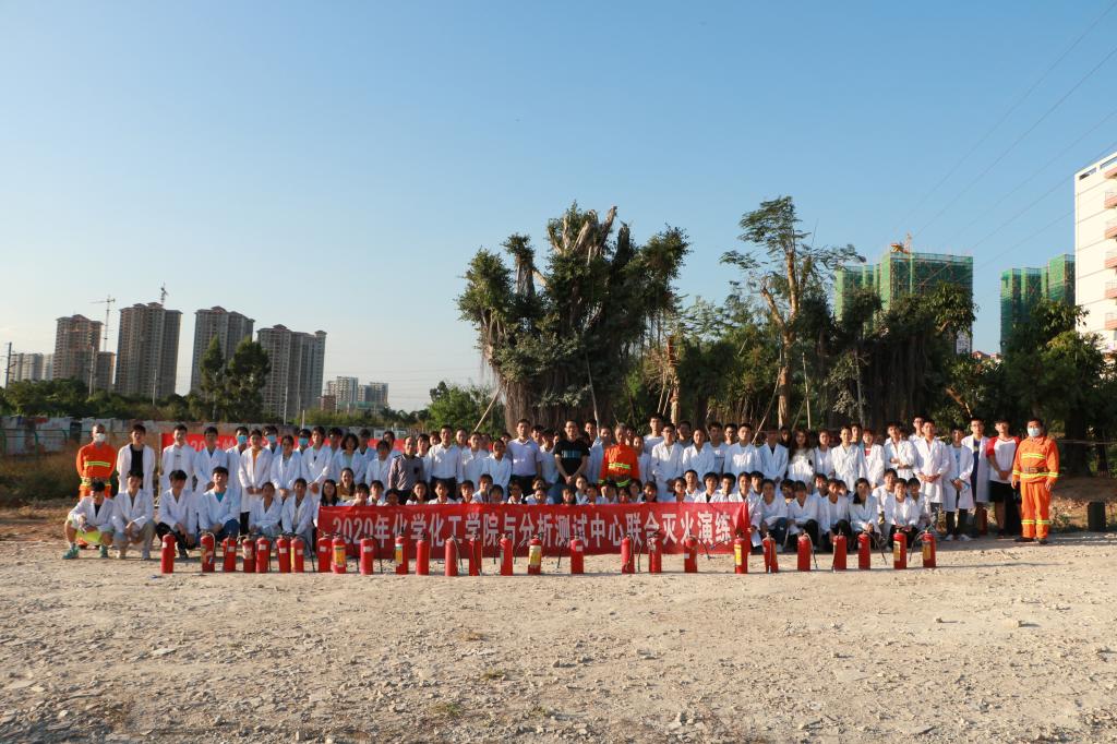 最后由学校安全保卫处科长李力禹指导同学们在实验楼联合开展“灭火器的使用”等方面消防和应急演练,化学化工学院2020年安全教育月正式启动。