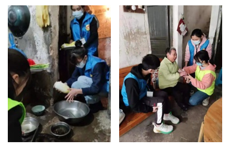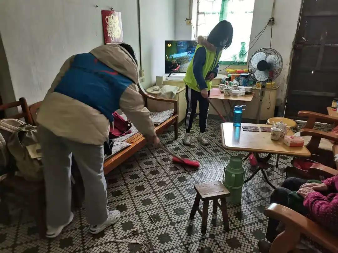 大扫除结束,活动也渐渐接近尾声。队员们与阿姨、奶奶拍照留念,并与她们告别。