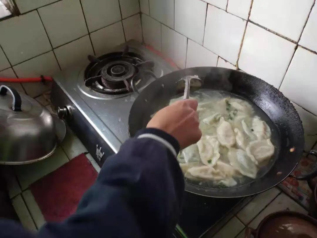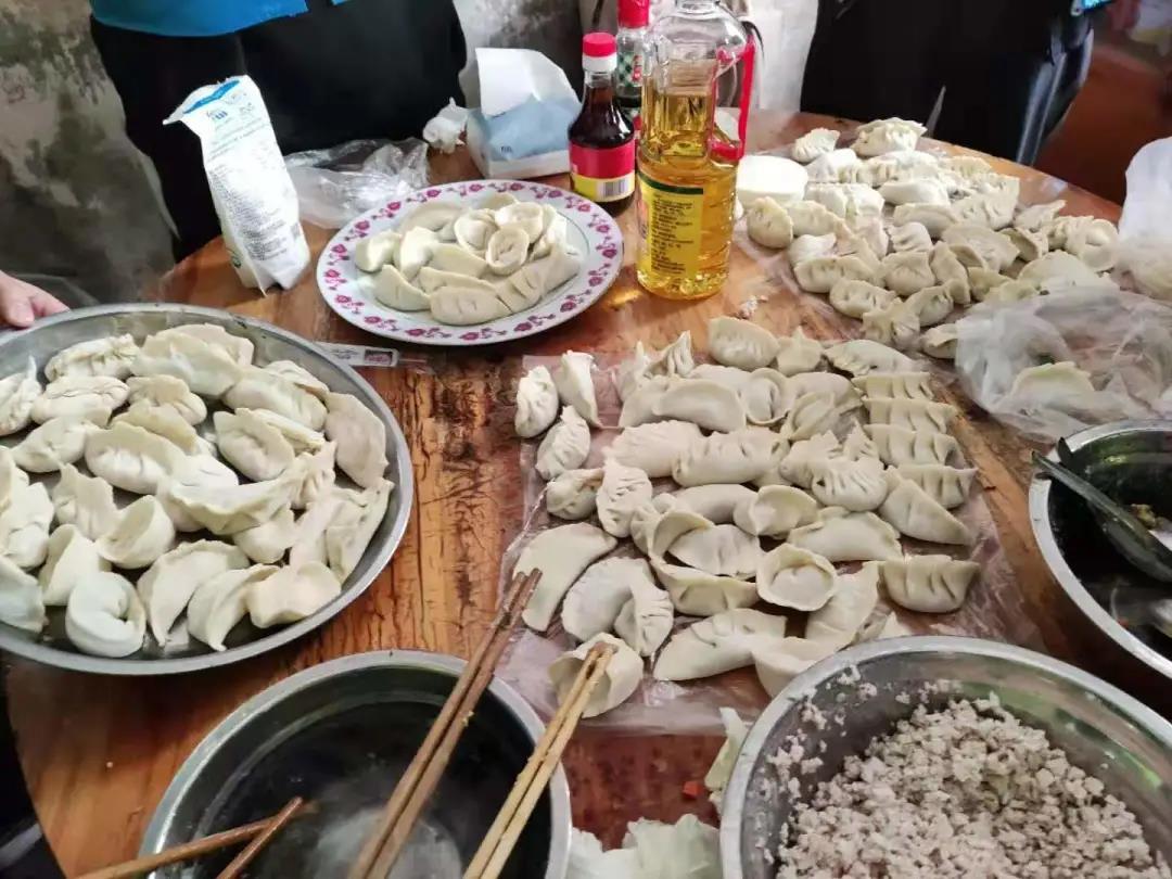 接着,饺子出锅了,队员们与阿姨、奶奶围着桌子坐在一起,一边吃一边聊天。一碗热腾腾的饺子下肚,冬天的寒冷都被驱散了。