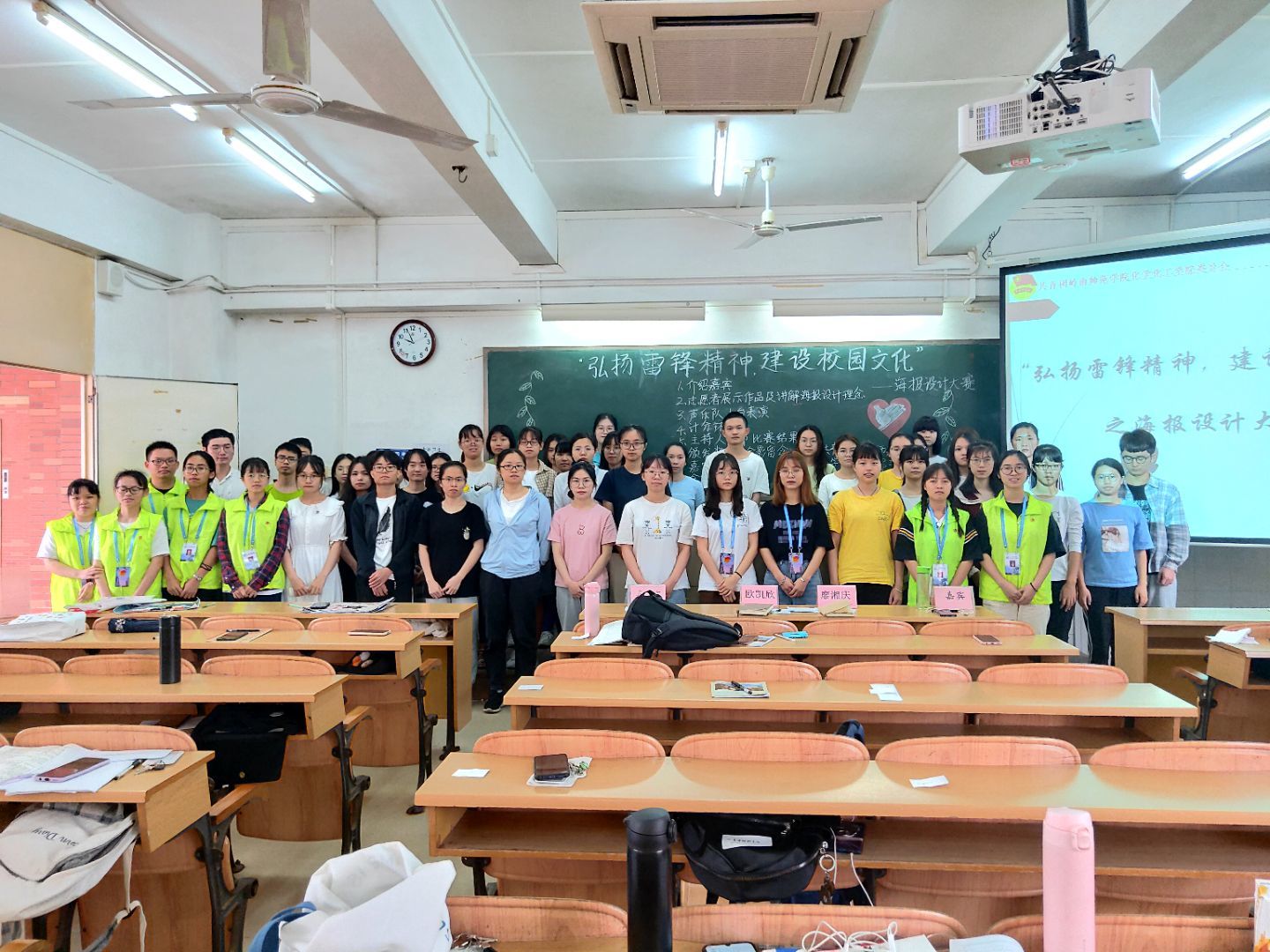 不知不觉,比赛已接近尾声,全体人员进行合影留念。通过这次海报设计比赛,越来越多的学生对雷锋精神有了更深的见解。相信不管是现在还是未来,雷锋精神都存在于我们心中,伴随在我们身边。希望更多的同学加入到“弘扬雷锋精神,建设校园文化”的队伍中。