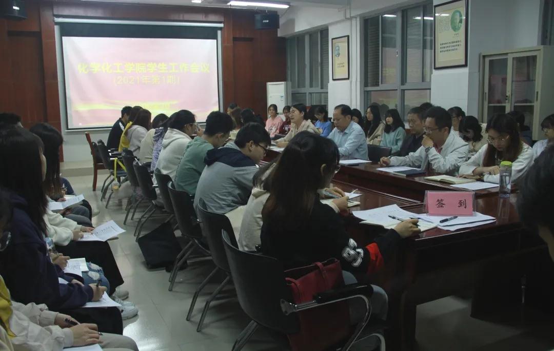 近日,化学化工学院在学校燕雷楼会议室召开2021年第1期学生工作会议,认真传达学校2021年度学生工作会议、共青团岭南师范学院委员会一届五次全体(扩大)会议精神,布置近期学生工作。化学化工学院党委副书记李凤炼,学工办全体辅导员,各学生机构主要负责人、部门部长,各班团支书、班长等参加会议。会议由学院副科级组织员辅导员刘晓颖主持。